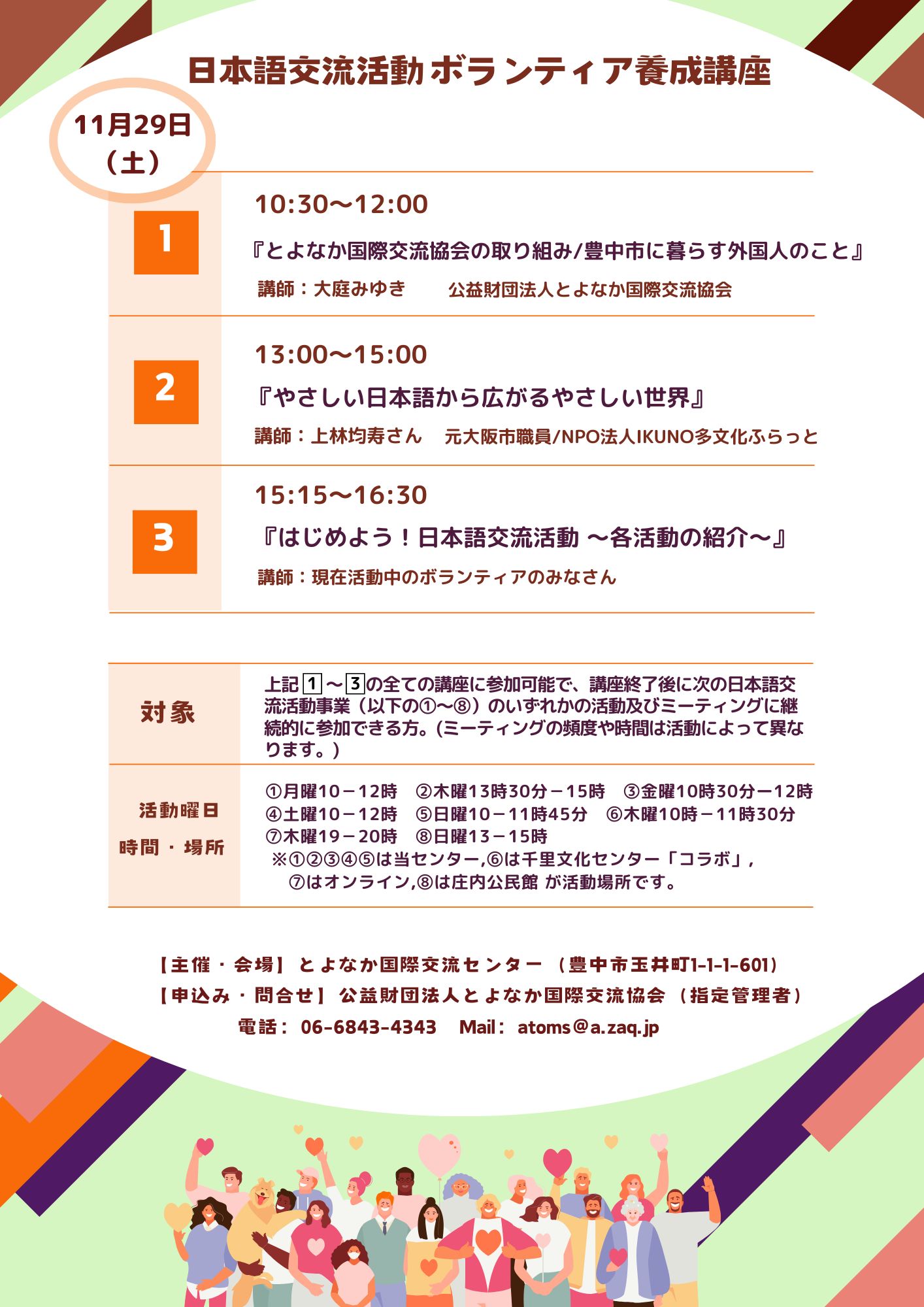 【11/6(木) 10時から受付開始】日本語交流活動 ボランティア養成講座