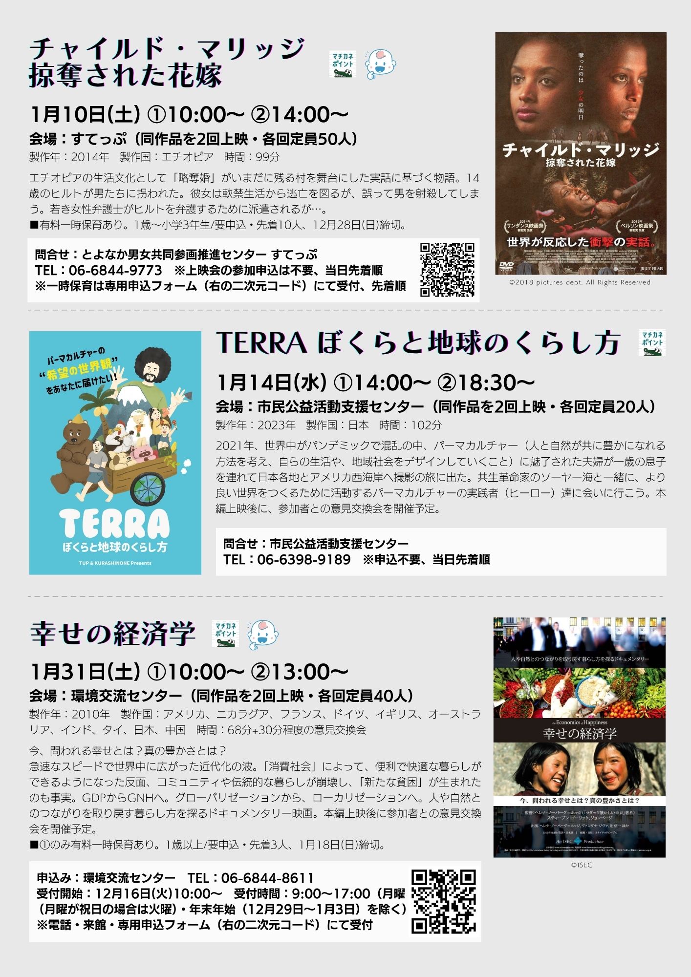 それぞれの施設が選ぶイチオシ映画から社会課題について知ること、そして映画鑑賞をきっかけに、より多くの方に豊中市内の公共施設の存在・取り組みを知っていただければと思います。また、ご参加いただくとマチカネポイントも貯めることが出来ます。是非、ご参加ください。