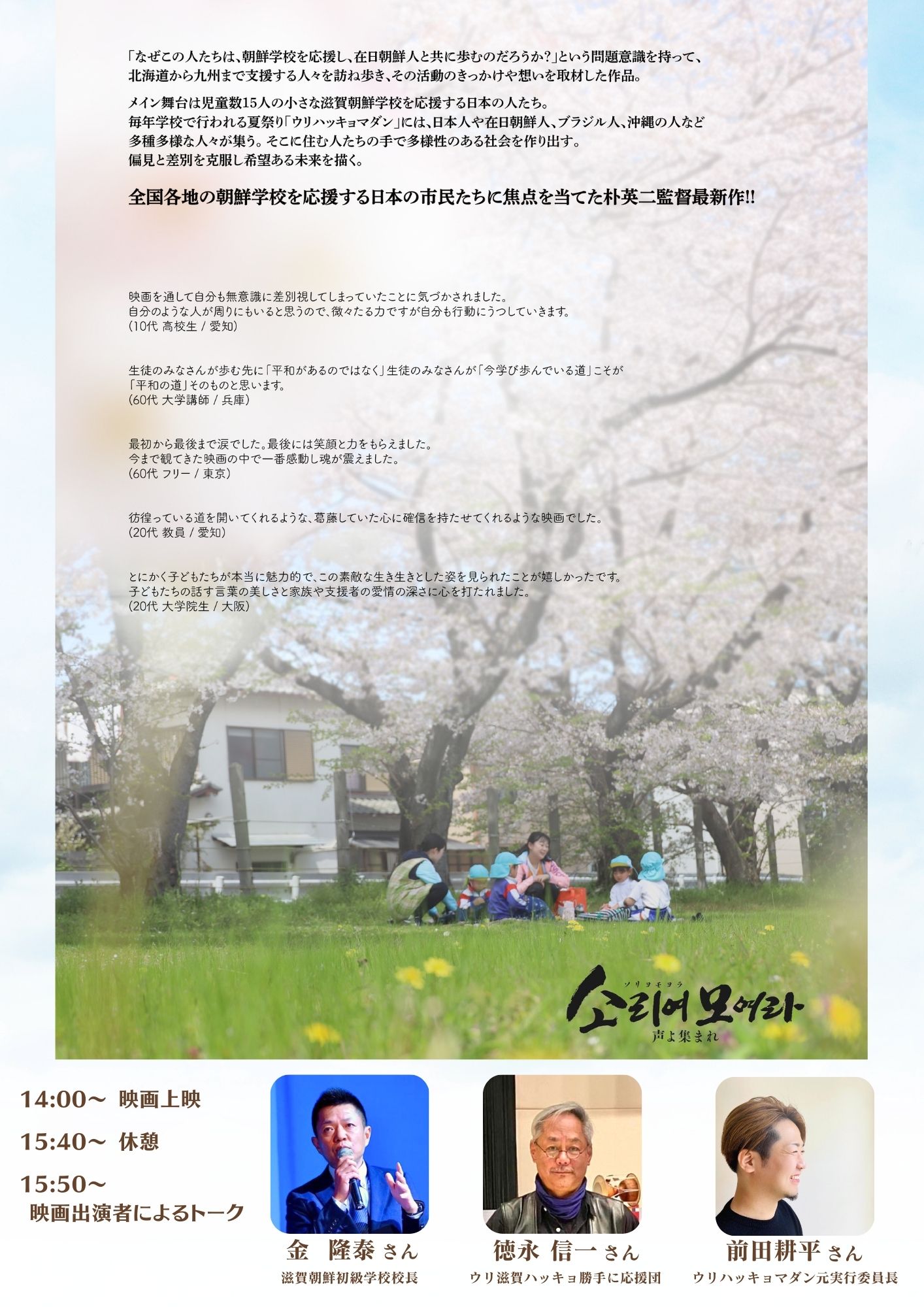 メイン舞台は児童数15人の小さな滋賀朝鮮学校を応援する日本の人たち。