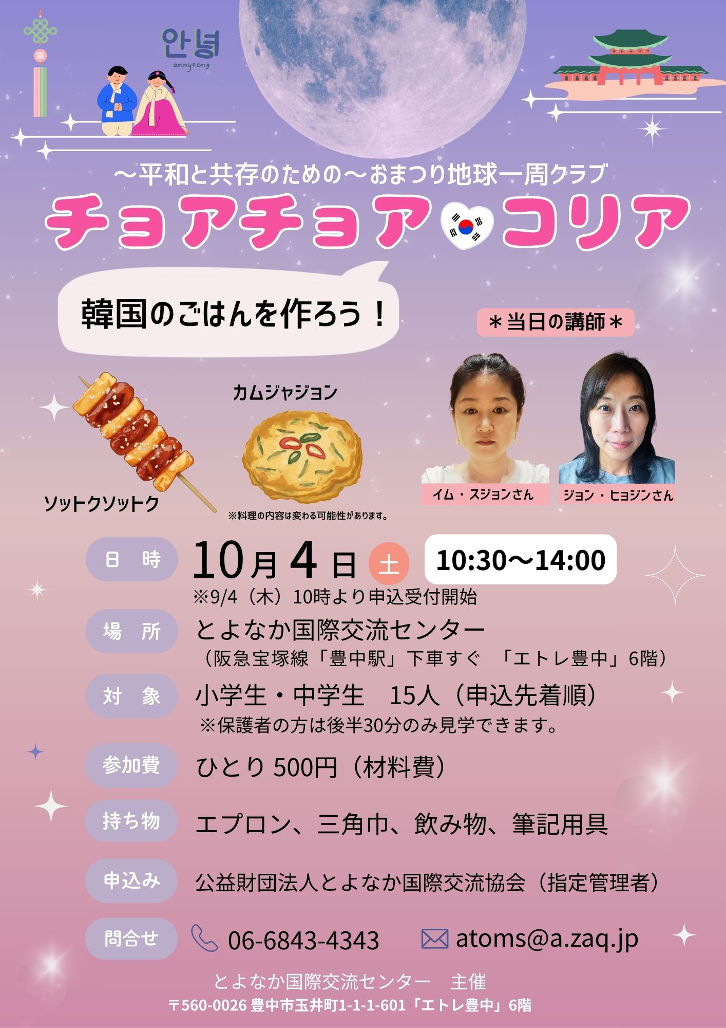 連絡先 | 公益財団法人とよなか国際交流協会 (指定管理者) Tel:06-6843-4343 E-mail:atoms@a.zaq.jp |