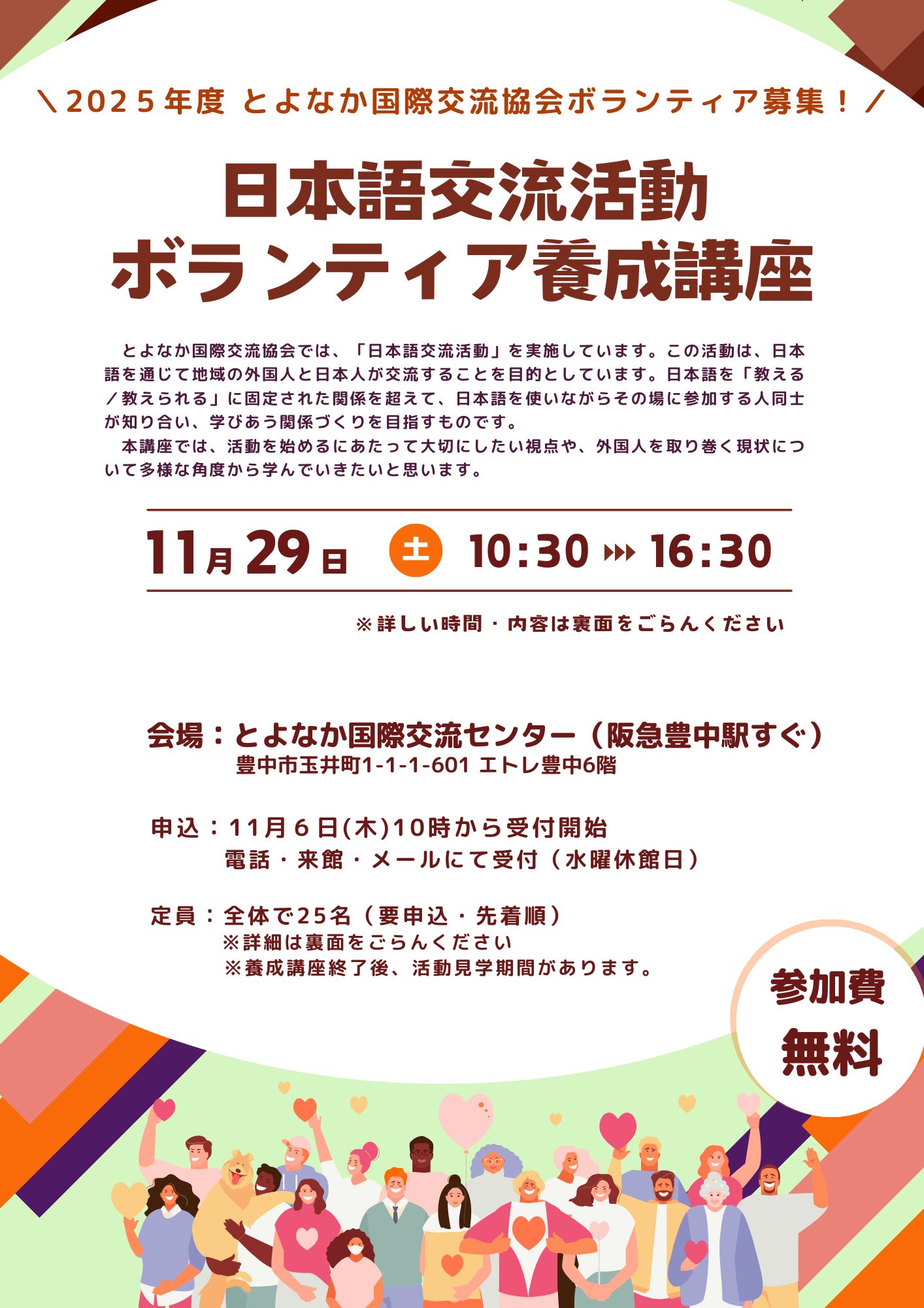 【11/6(木) 10時から受付開始】日本語交流活動 ボランティア養成講座