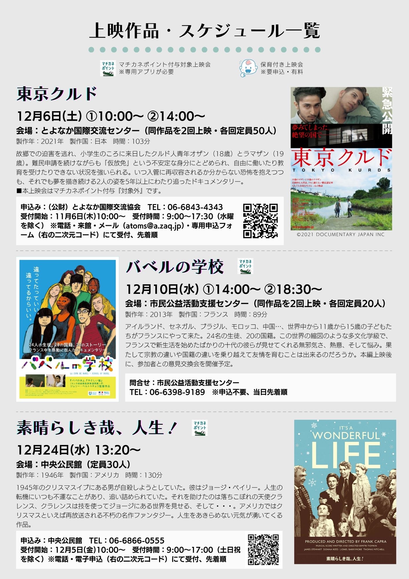 2025年12月6日(土)~2026年2月23日(月)まで、豊中市内の公共施設(5施設)とのコラボ企画『とよなかシネコン』を開催します。